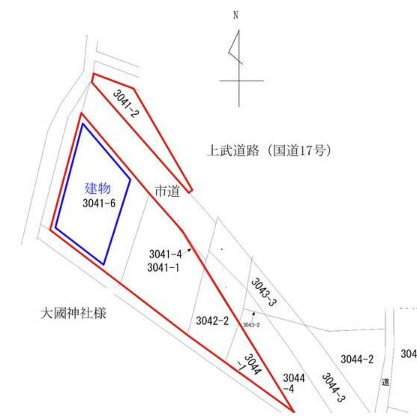 国道17号線から少し入った場所にある貸倉庫です。