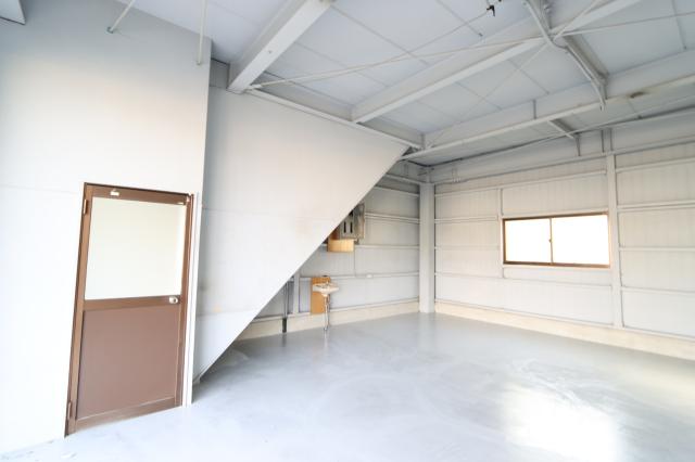 倉庫と事務所が一体型の物件で、1階を倉庫、2階を事務所としてお使い頂けます。