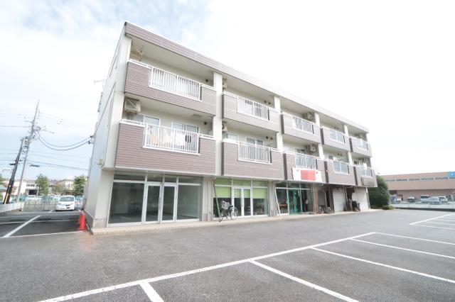県道128号・土浦大曽根線沿いの建物の1階路面店・角住戸です。
