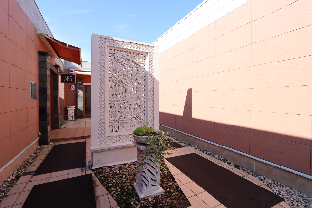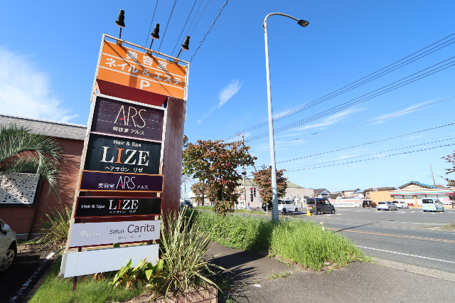 旧国道7号線沿いにある建物で、美容系の店舗が集まる複合施設内の貸テナントです。